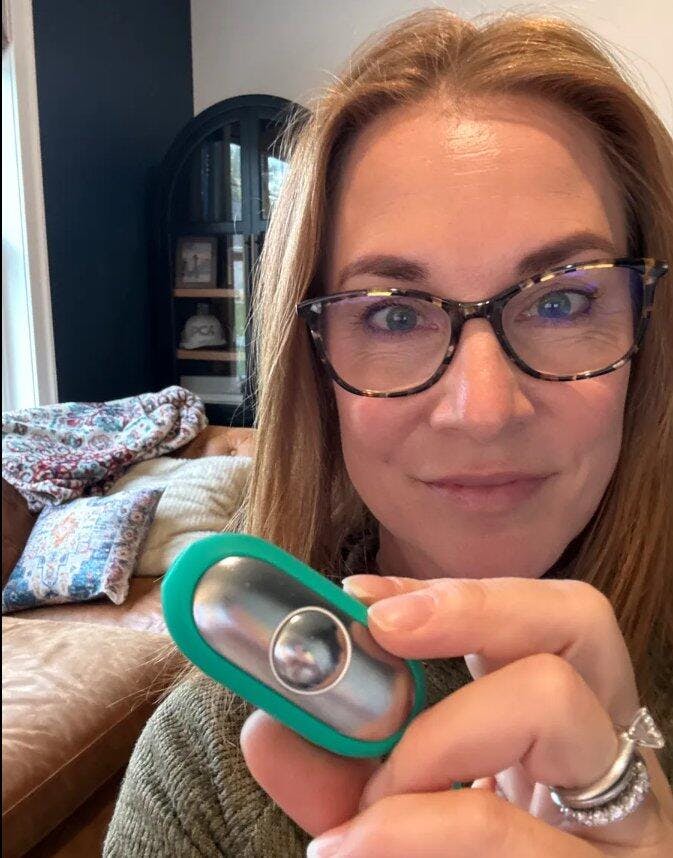 Elle adore les étuis de transport violets et bleu sarcelle ! Les impulsions sont plus fortes que je ne le pensais, mais c'est génial de pouvoir commencer doucement et d'augmenter l'intensité si on le souhaite.