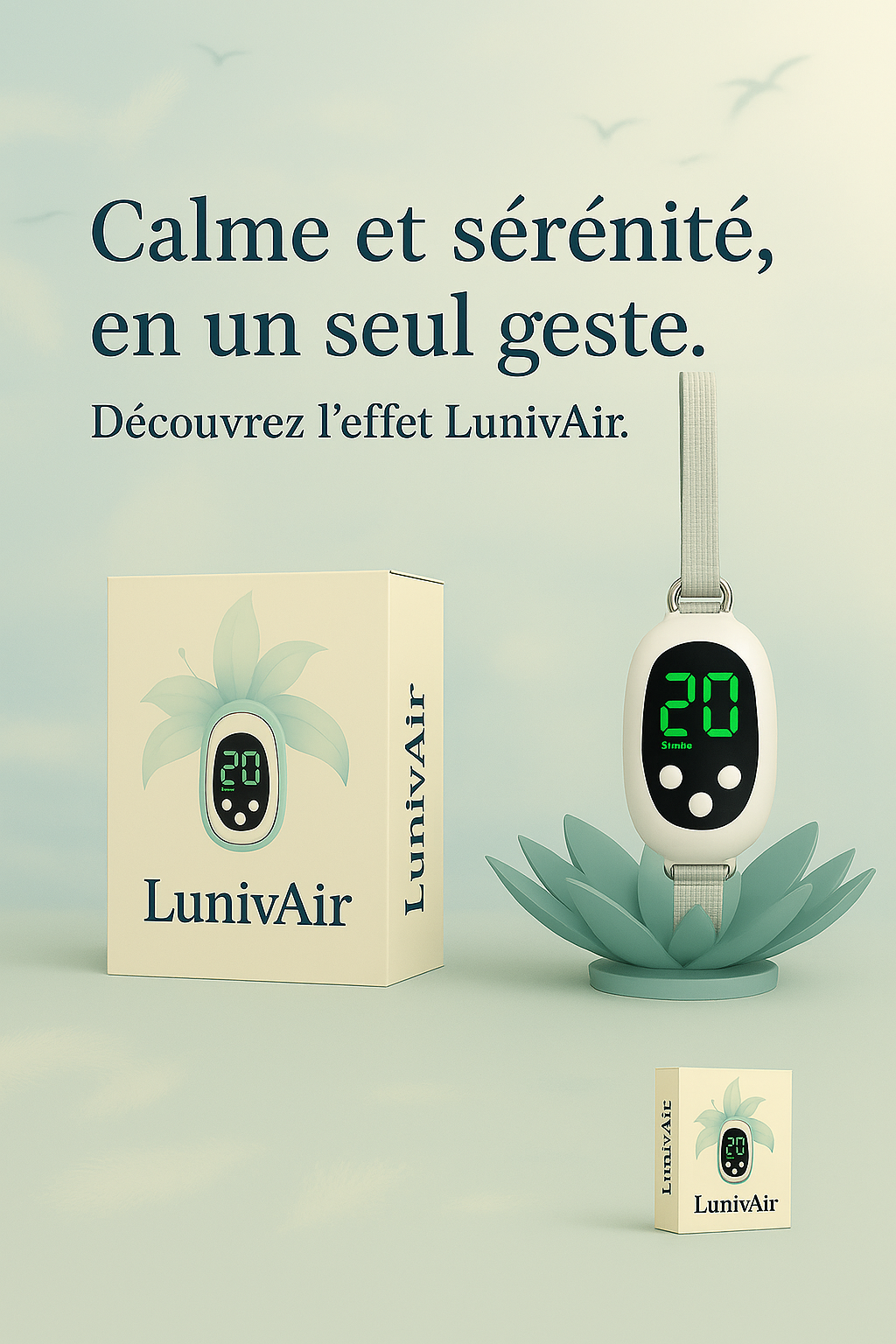 C'est pourquoi nous avons créé LunivAir™, pour les personnes comme vous qui souhaitent reprendre le contrôle, naturellement. Sans pilules. Pas de dépendance. Juste une technologie douce, inspirée de l'acupression, qui vous aide à vous détendre en quelques minutes. Parce que la tranquillité d'esprit ne devrait pas être un luxe, mais votre nouvelle norme.